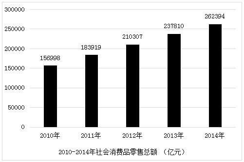 2010-2014年,我國社會消費品零售總額年平均增加約多少萬億元?