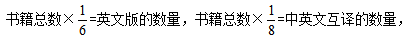 林華全家是閱讀愛好者,家里有各種書籍,版本也多。已知他家有五分之三的書是中文版的,六分之一是英文版的,八分之一是中英互譯版的,還有多余11本但少于17本是其他版本的,問:他家有多少本英文版書?