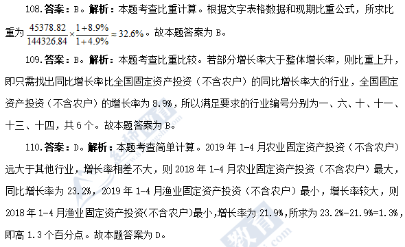 109. 表格中的14大行業(yè)中,有幾個(gè)行業(yè)2019年1-4月固定資產(chǎn)投資(不含農(nóng)戶)占全國(guó)固定資產(chǎn)投資(不含農(nóng)戶)的比重比去年同期高?( )