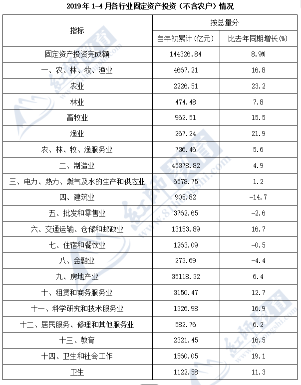 110. 2018年1-4月農(nóng)、林、牧、漁業(yè)行業(yè)中固定資產(chǎn)投資(不含農(nóng)戶)最大行業(yè)在2019年1-