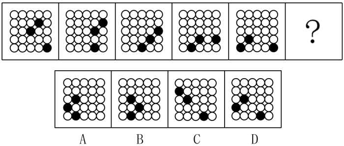 89.答案:D。解析:題干圖形均由小黑球和小白球構(gòu)成,觀察發(fā)現(xiàn),圖中三個(gè)黑色小球,沿圖示路線每次移動(dòng)一格,只有D項(xiàng)符合此規(guī)律。故本題答案為D。