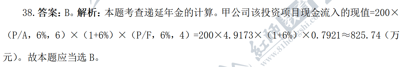 37.答案:C。解析:本題考查企業(yè)財(cái)務(wù)關(guān)系。公司與被投資單位之間的財(cái)務(wù)關(guān)系:公司與被投資單位之間的財(cái)務(wù)關(guān)系主要是指公司將閑置資本以購買股票或直接投資的形式向其他公司投資形成的經(jīng)濟(jì)利益關(guān)系。公司與被投資單位之間的財(cái)務(wù)關(guān)系體現(xiàn)的是所有權(quán)性質(zhì)的投資與受資的關(guān)系。甲公司認(rèn)購乙公司的股票,所以甲公司是乙公司的股東,乙公司是被投資方,反映的是投資與受資的財(cái)務(wù)關(guān)系,故本題應(yīng)當(dāng)選C。