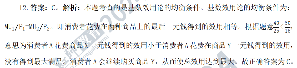 13.答案:B。解析:本題考查的是價(jià)格消費(fèi)曲線的含義。價(jià)格—消費(fèi)曲線表示在消費(fèi)者收入和其他商品價(jià)格保持不變的條件下,隨著一種商品價(jià)格的變動(dòng),消費(fèi)者均衡點(diǎn)變動(dòng)的軌跡。故正確答案為B。