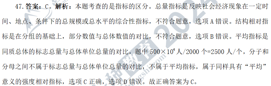 47. 某地區(qū)有500萬(wàn)人口,共有2000個(gè)醫(yī)院,平均每個(gè)醫(yī)院要服務(wù)2500人。則這個(gè)指標(biāo)是( )。