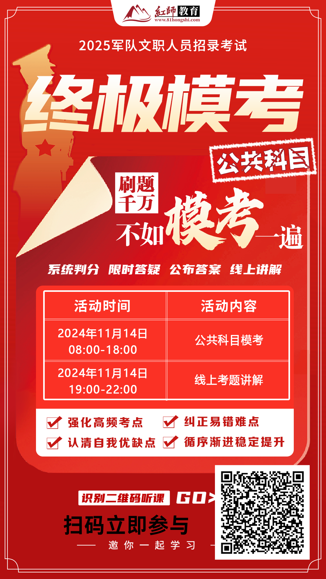 | 軍隊(duì)文職25年筆試網(wǎng)課 | 軍隊(duì)文職資料包 | 紅師師資助力考生 |