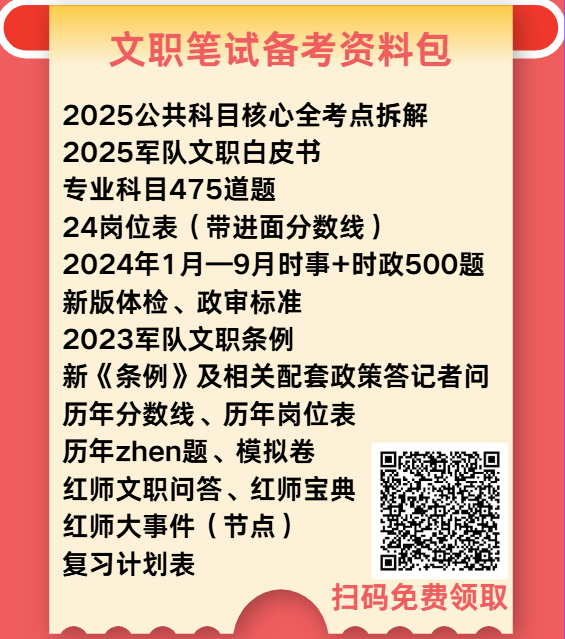 | 軍隊(duì)文職25年筆試網(wǎng)課 | 軍隊(duì)文職資料包 | 紅師師資助力考生 |