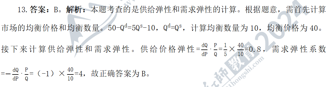 12.答案:D。解析:本題考查的是GDP相關內(nèi)容。生產(chǎn)性非市場交易與非生產(chǎn)性市場交易不計入GDP。A選項是生產(chǎn)性的非市場交易,BC選項是非生產(chǎn)性市場交易,均不計入GDP;D選項是生產(chǎn)性市場交易,故計入GDP,選D。