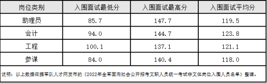 表2 2022年“工商管理類”專業(yè)對應(yīng)崗位筆試進(jìn)面分?jǐn)?shù)線