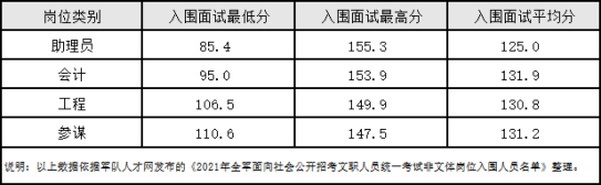 表3 2021年“工商管理類”專業(yè)對應(yīng)崗位筆試進(jìn)面分?jǐn)?shù)線