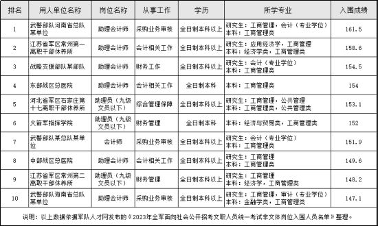 以下總結(jié)了2023年“工商管理類”專業(yè)進(jìn)面分?jǐn)?shù)最高和最低的十大崗位,同學(xué)們可以參考一下。