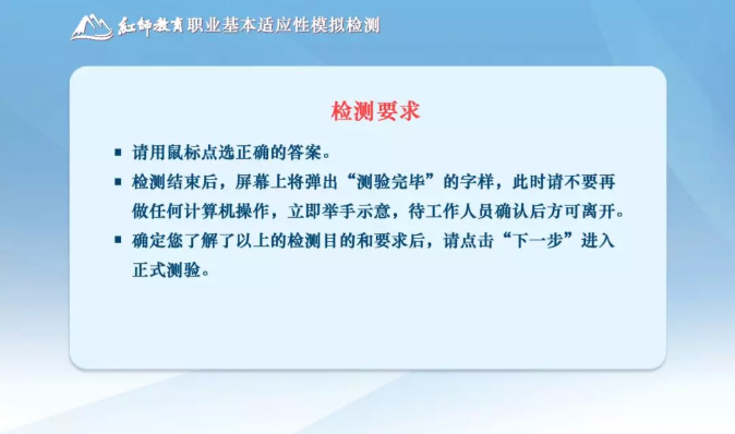 紅師教育為了幫助廣大文職面試考生順利通過心理測試,在2019年研發(fā)了“軍隊(duì)文職模擬心理測試系統(tǒng)”,并在2019年軍隊(duì)文職面試培訓(xùn)中供考生在考前進(jìn)行模擬練習(xí)。