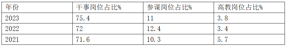 以下是近三年漢語言文學(xué)專業(yè)考生上岸崗位前三位占比率: