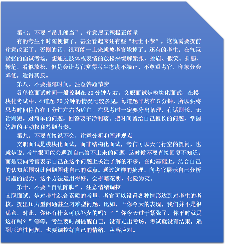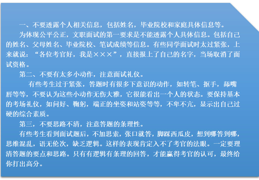 今天小編根據(jù)往年考生在面試的出現(xiàn)的問題,向大家總結(jié)十大十分重要的經(jīng)驗(yàn),記得提前點(diǎn)贊收藏哦!