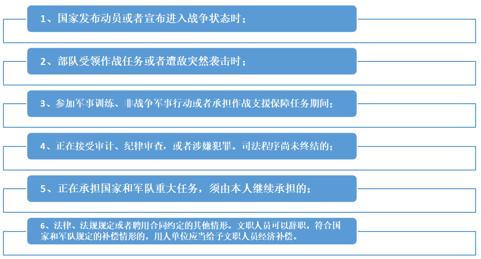 但有下列情形之一的,則文職人員不得辭職或者單方面解除聘用合同。