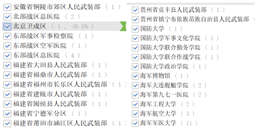 干部休養(yǎng)所外,還有人民武裝部、各部隊單位、各軍種部隊、軍事院校以及部隊醫(yī)院等。