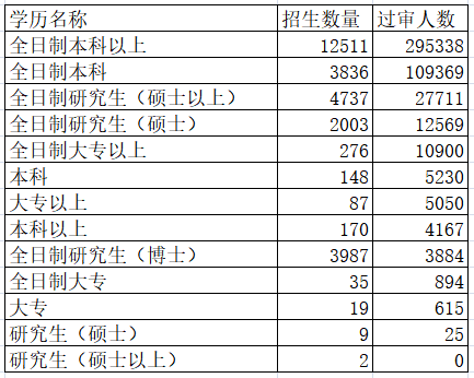 對學(xué)歷要求高的崗位報名人數(shù)較少