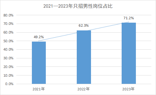 從2021年到2023年。計算機專業(yè)只招收女性的崗位數量不多,只有幾十個。
