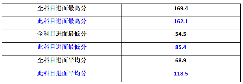 2022年全科目進面成績與法學(xué)科目進面成績對比表: