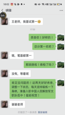 “感謝紅師教育,感謝老師的辛勤付出!在我報(bào)考軍隊(duì)文職的人生旅程上,您豐富了我的心靈,開(kāi)發(fā)了我的 智力,為我點(diǎn)燃了希望的光芒,謝謝您了,老師!”