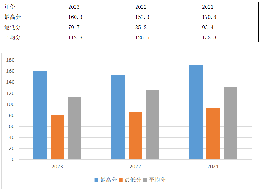 首先,我們先來看看2021年到2023年“政治學”進面的最高分、最低分及平均分。