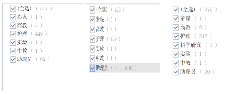 以下是2023年到2021年,備考護理學(xué)科目考生上岸軍隊文職后所從事的崗位類別。