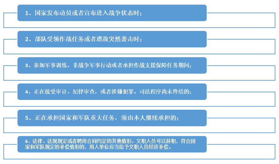 但有下列情形之一的,則文職人員不得辭職或者單方面解除聘用合同: