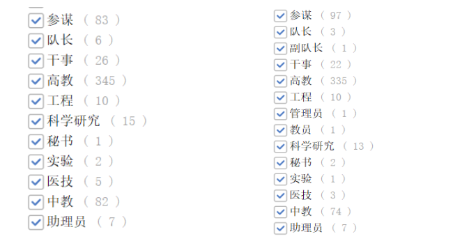 專業(yè)科目“教育學(xué)”所對應(yīng)的崗位所從事的工作內(nèi)容與教育工作高度相關(guān)。從崗位類別看,主要崗位類別為教師類崗位,如高教、中教,并且參謀和干事崗位所從事的主要工作內(nèi)容也是“國防教育”“宣傳文化”“心理咨詢”等與教育類工作,具體看下圖: