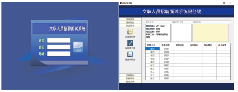 面試系統(tǒng)由網(wǎng)絡(luò)管理員負(fù)責(zé)操作,考官面前的界面既能現(xiàn)實(shí)考題,也能顯示答案,并且可以為考生打分。