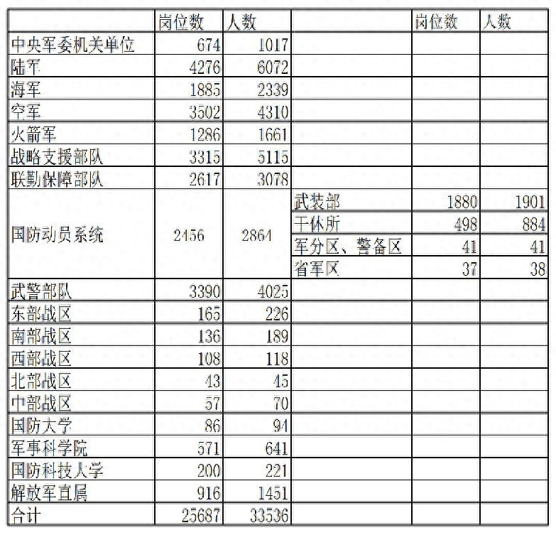 從表格中可以看出,2023年陸軍是招得最多,戰(zhàn)略支援部隊(duì)、武警部隊(duì)增幅大,醫(yī)院、干休所、軍隊(duì)院校仍然是大戶。