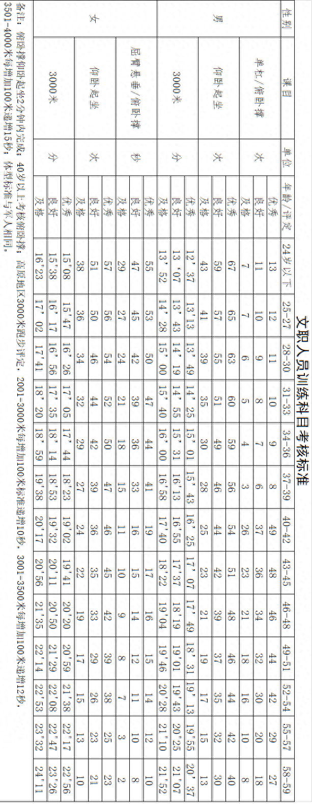 部隊(duì)文職體能考核標(biāo)準(zhǔn)表
