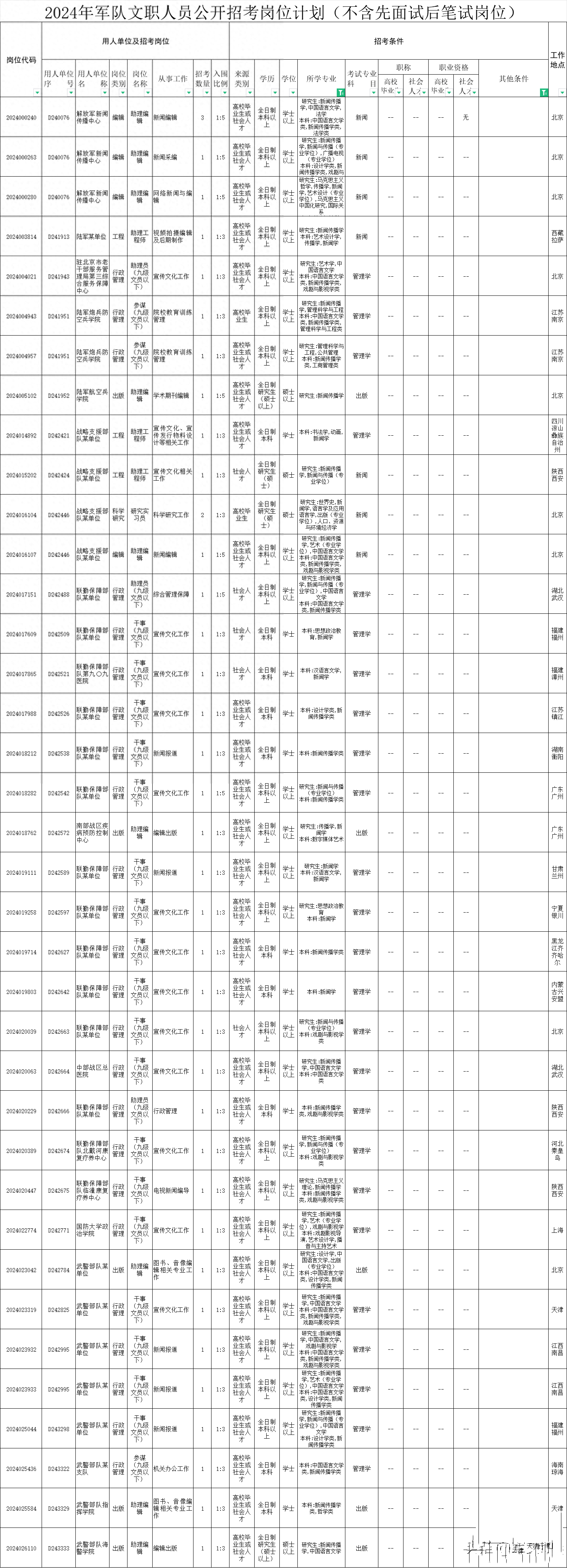 2024年軍隊文職人員公開招考 崗位計劃(不含先面試后筆試崗位)