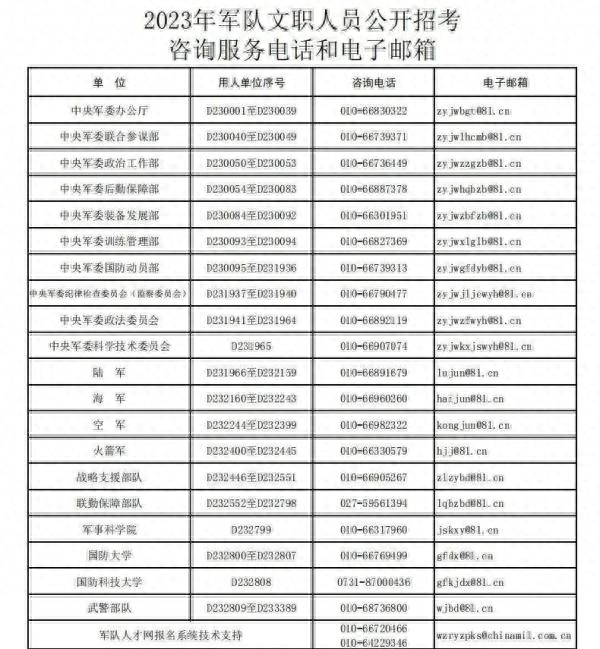 2024年軍隊(duì)文職人員公開招考咨詢服務(wù)電話和電子郵箱