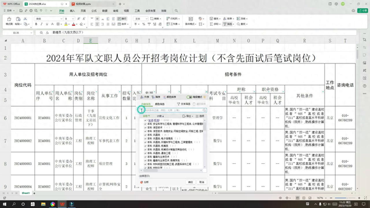 手把手教你搜軍隊(duì)文職崗位表。