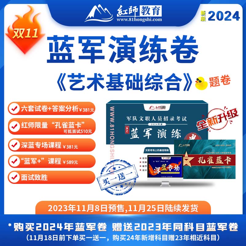 2024紅師教育軍隊(duì)文職藝術(shù)基礎(chǔ)綜合專(zhuān)業(yè)《藍(lán)軍演練卷》將于11月8日開(kāi)始預(yù)售!