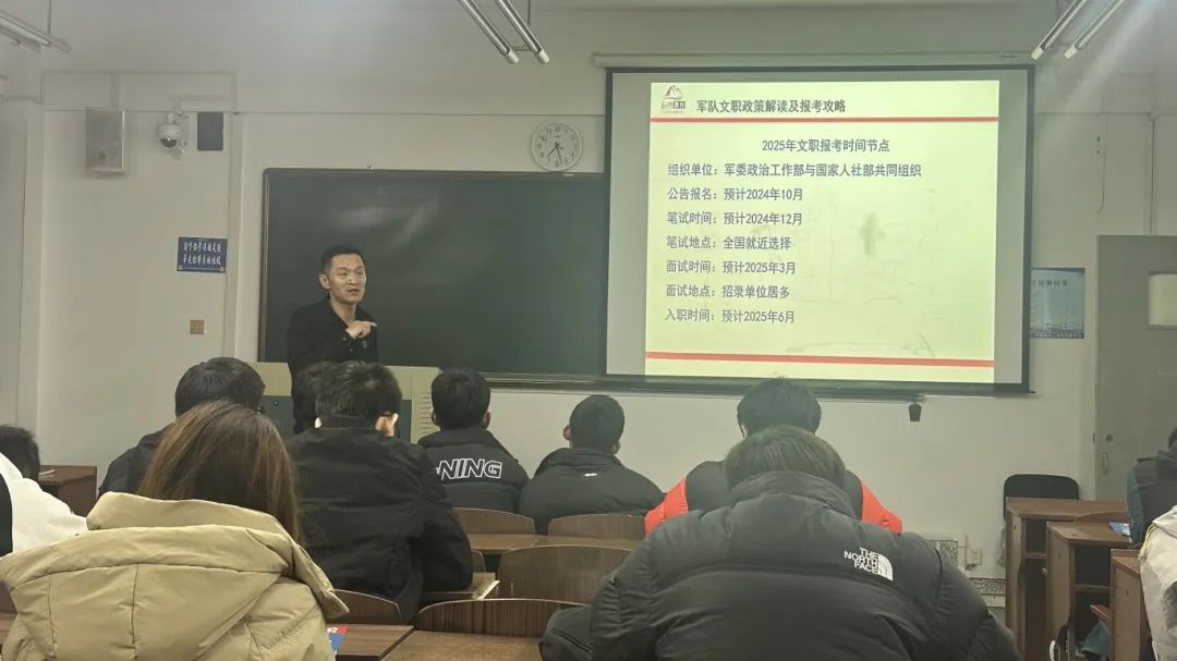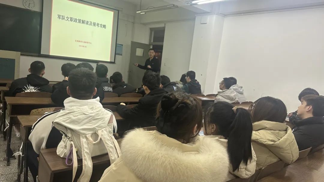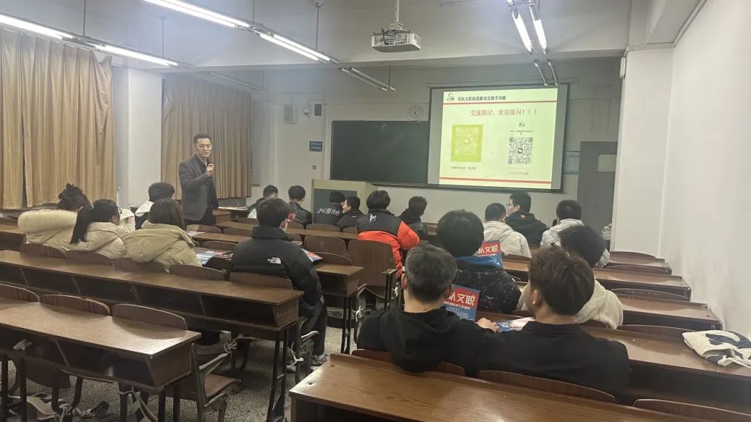 通過韓老師的宣講,同學(xué)們對軍隊文職的職業(yè)特性、發(fā)展前景、福利待遇、如何報考、怎樣備考等,有了深入的了解,也了解到,除了考公、考研、企業(yè)就業(yè)以外,軍隊文職也是個人就業(yè)、發(fā)展的一個重要選擇。