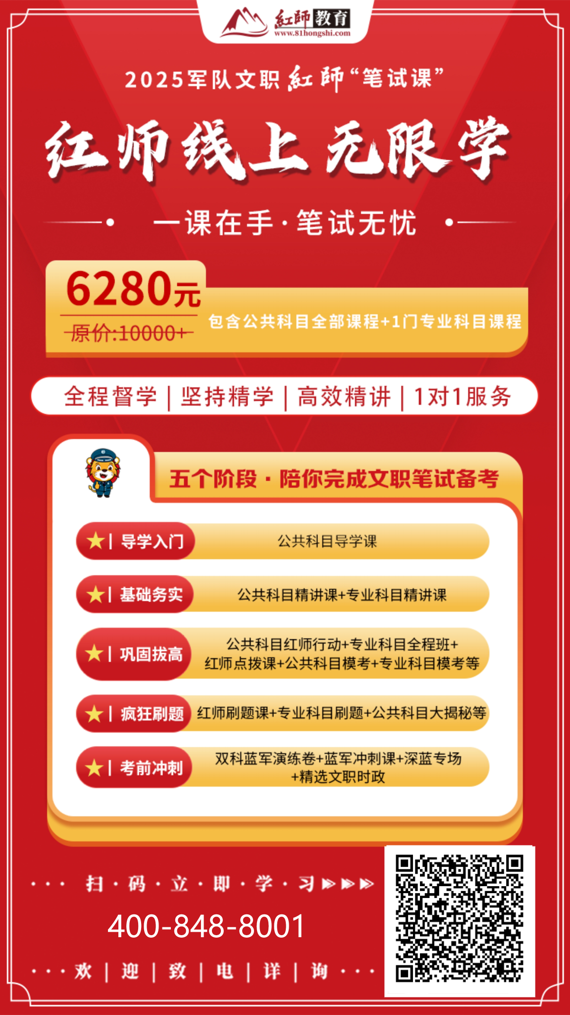成功留給有準(zhǔn)備之人。任何準(zhǔn)備都不是盲目的,需要靠自己的不懈努力,紅師教育相信大家,只要大家從現(xiàn)在開始未雨綢繆,終將在2025軍隊(duì)文職考試中取得成功。
