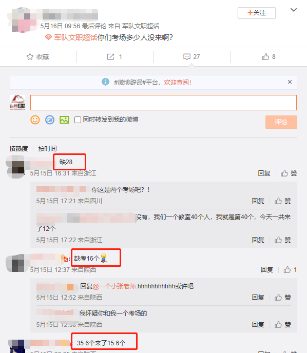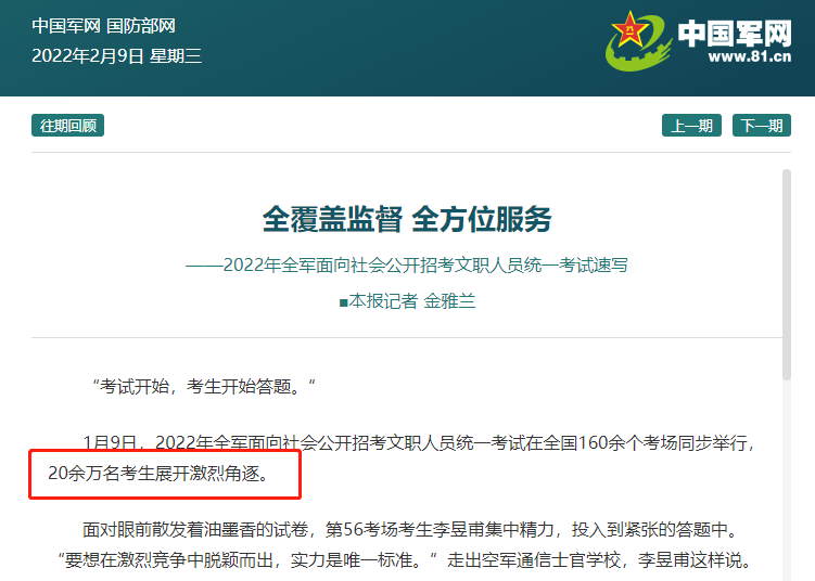 關注過往年的參考人數和情況的同學都知道,其實每年軍隊文職筆試都有缺考人數,人數還不少。大家只要抓住機會,和通過堅持的努力,今年也是上岸機遇之年,加油!