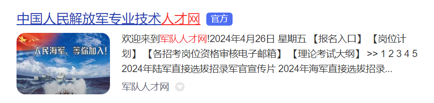 官網(wǎng):軍隊人才網(wǎng)(http://81rc.81.cn/)