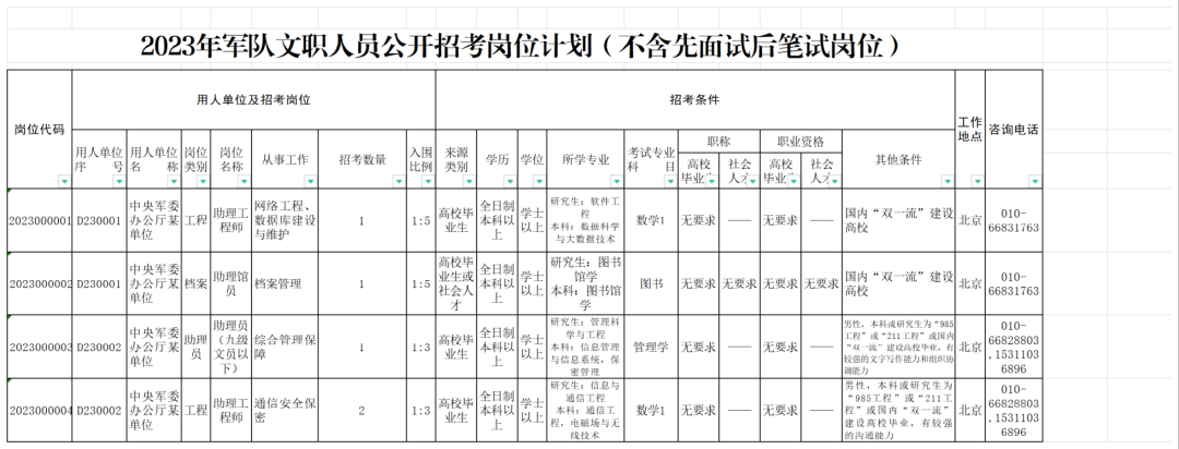 2024年軍隊(duì)文職人員公開招考咨詢服務(wù)電話和電子郵箱