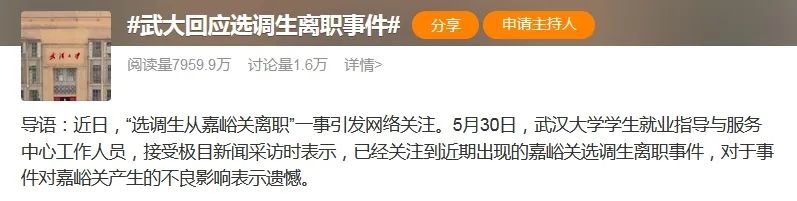 這幾天“武大選調(diào)生離職”事件引起廣泛熱議