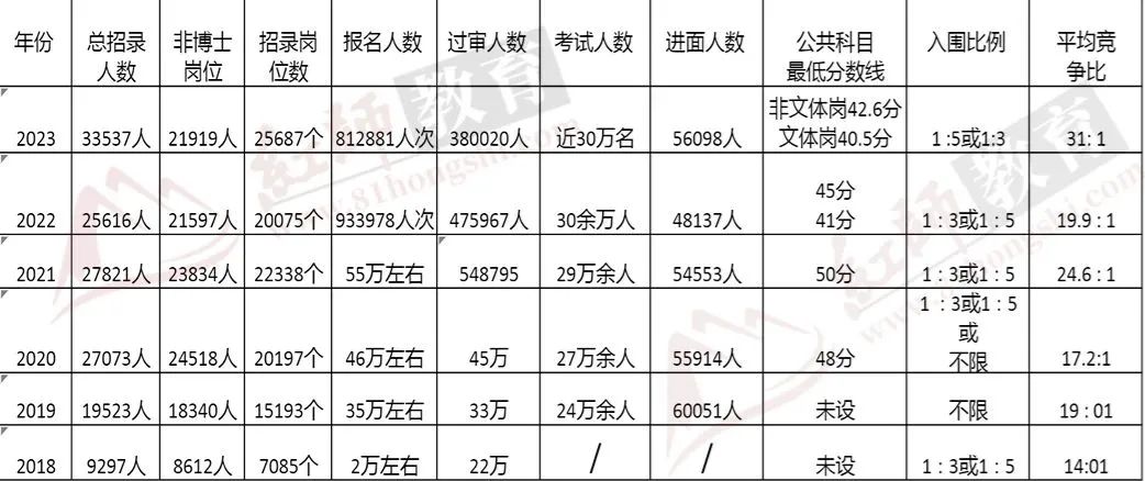 軍隊文職因為招考歷史比較短,還沒有公考和事業(yè)編那樣基本人盡皆知,所以參與考試的人相對來說少很多,部隊也正是缺人的時候,招的崗位卻不比公考的崗位少,這樣算下來,競爭比要小很多,一次上岸的幾率更高。