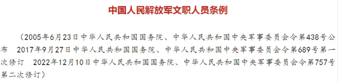 去年年初,中華人民共和國國務(wù)院、中華人民共和國中央軍事委員會共同頒發(fā)新的《中國人民解放軍文職人員條例》以及配套文件。