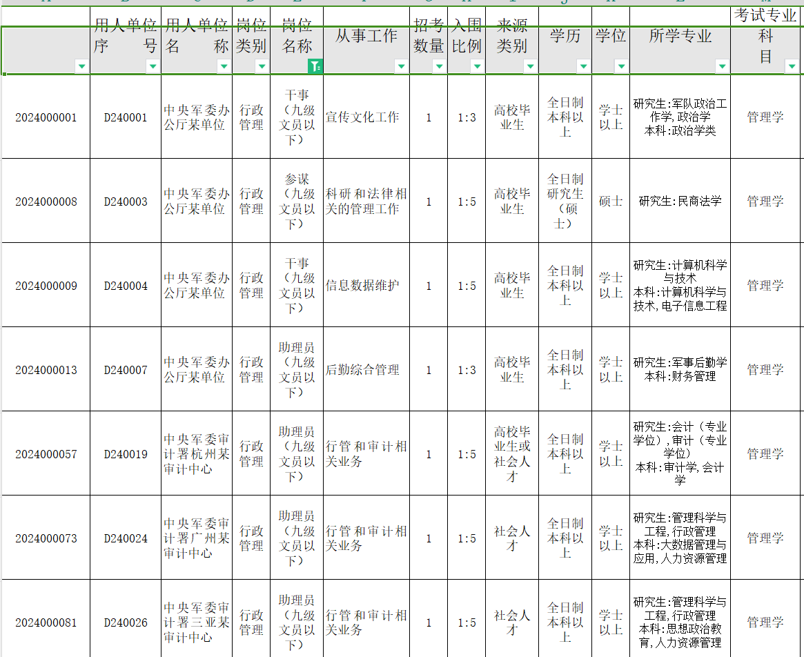 管理崗:指擔(dān)負(fù)領(lǐng)導(dǎo)職責(zé)或管理任務(wù)的崗位,對(duì)一個(gè)人的綜合能力要求較高。如:參謀、干事、助理員。崗位信息大致要求如下: