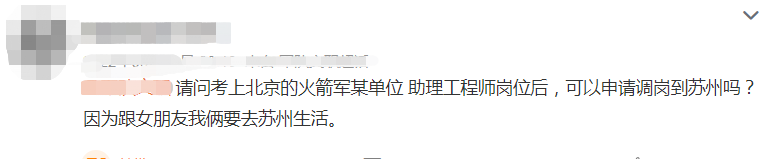 有同學(xué)聽說沒有理想崗位的話,可以先選一個(gè)上岸,然后到時(shí)候再申請(qǐng)調(diào)崗。這樣的言論是很不負(fù)責(zé)任的,軍隊(duì)文職不同于社會(huì)上的企業(yè),和公務(wù)員差不多一個(gè)蘿卜一個(gè)坑,考上后很難進(jìn)行職位調(diào)動(dòng),更別提跨區(qū)域的調(diào)動(dòng)了。