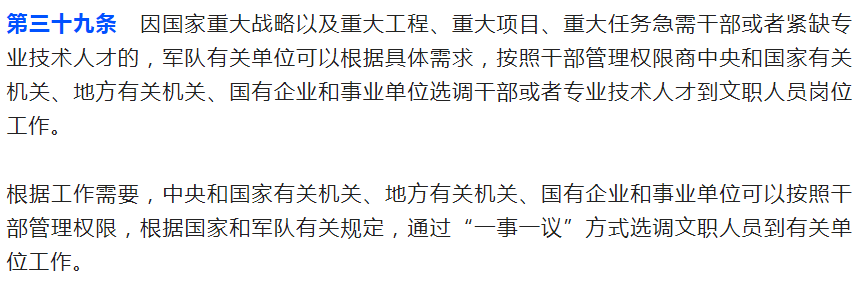 如上圖所示,雖然新文職人員條例出臺(tái)后,對(duì)文職人員的調(diào)動(dòng)規(guī)定有所松動(dòng),但是條件很苛刻,實(shí)際操作起來是很難的。所以大家不要抱著先考上后調(diào)動(dòng)的想法去考軍隊(duì)文職,否則大概率會(huì)后悔。
