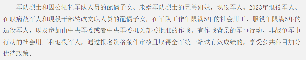 軍隊(duì)文職筆試對(duì)于特定人群會(huì)實(shí)行加分政策,加5到10分,不要小看這5到10分,往年就有很多人就差這5分就進(jìn)入面試了。根據(jù)歷年公告,以下人群會(huì)享受加分政策: