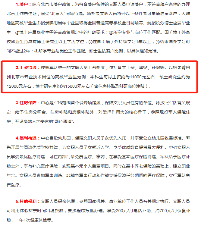 我們可以看到軍隊文職人員的工資待遇十分可觀。更多信息可搜索:國防部發(fā)布:軍隊文職人員待遇保障將進一步提高