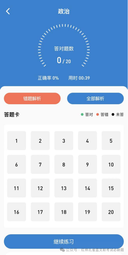 包含豐富的題庫(kù)資源、錯(cuò)題分析功能。公共科目+各科專(zhuān)業(yè)科目刷題,公共科目有近7000道題,每道題都有詳細(xì)解析,易錯(cuò)題或者經(jīng)典題可以點(diǎn)左下角收藏,做完還會(huì)生成自己專(zhuān)屬做題報(bào)告。