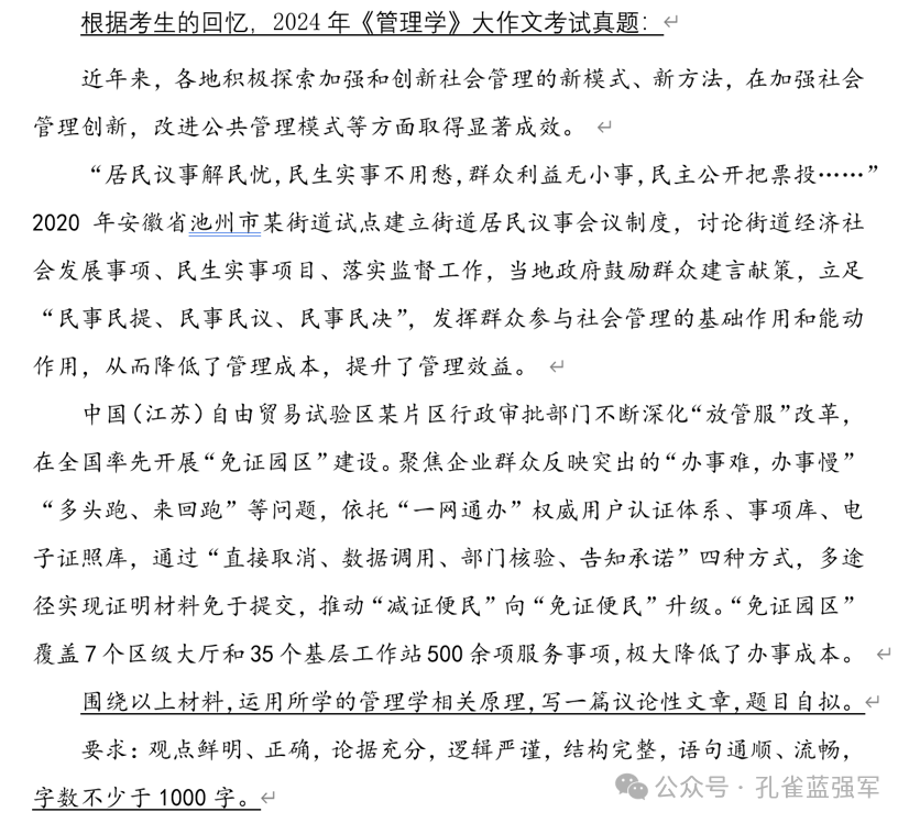 經(jīng)過紅師教育的深度教研發(fā)現(xiàn),2024軍隊文職《管理學(xué)》命題參照了管理學(xué)專碩聯(lián)考考情,2024年軍隊文職《管理學(xué)》大作文屬于論說文。