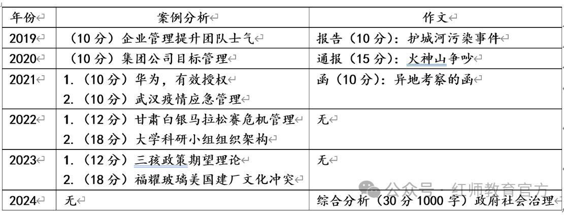 主觀題的考查形式發(fā)生了較大變化,2024年調(diào)整為根據(jù)給出材料,利用管理學(xué)的相關(guān)知識(shí)寫一篇論說文,這種變化更注重考生對(duì)管理學(xué)知識(shí)的綜合運(yùn)用能力。